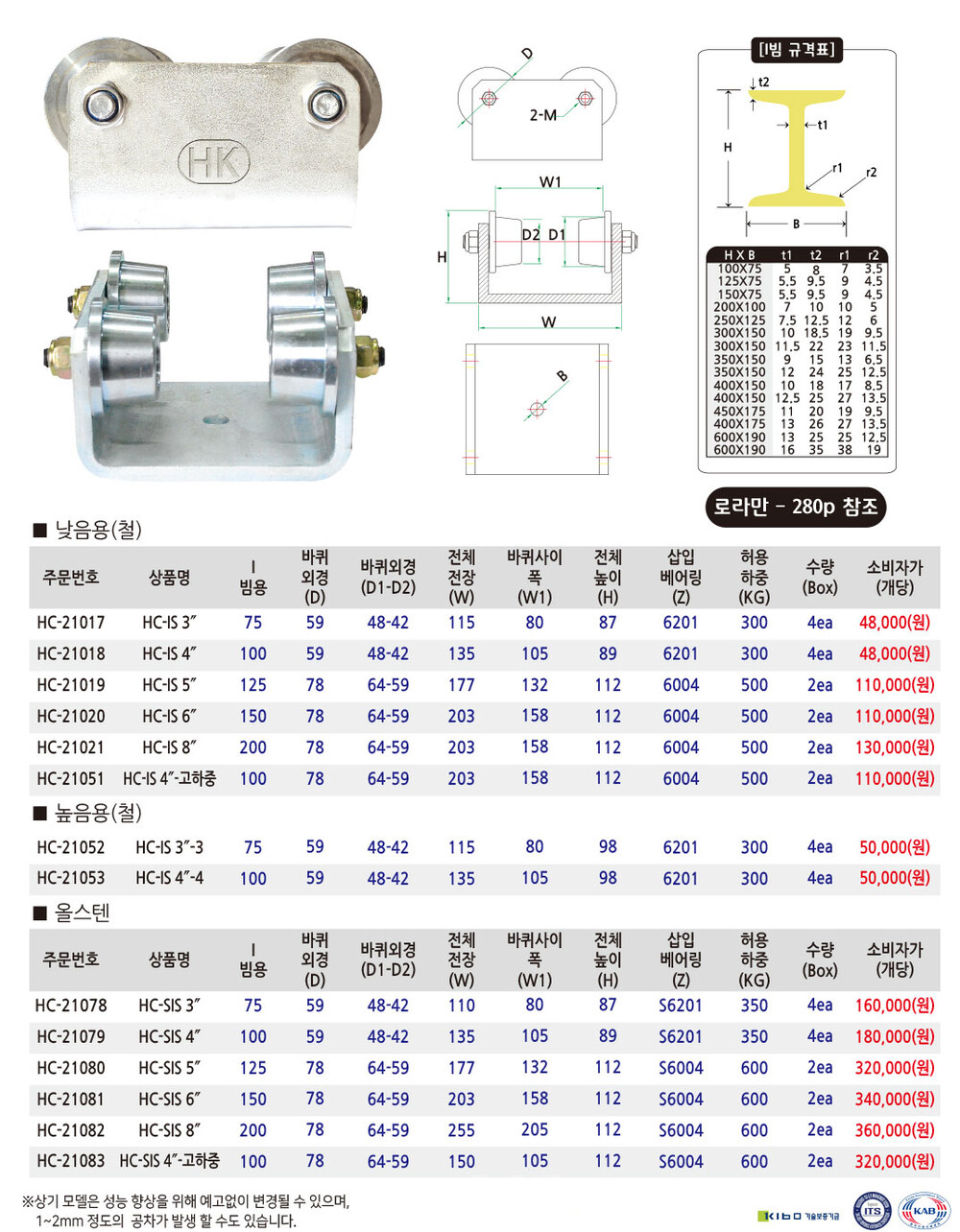 철,올스텐 4륜 트로리(I빔용)