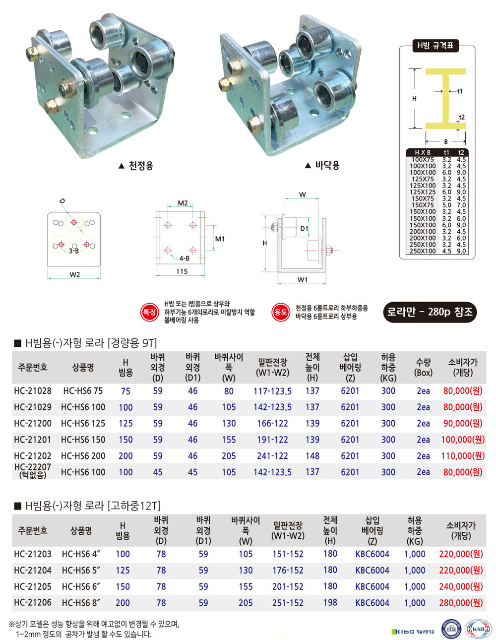 6륜 H빔용 트로리