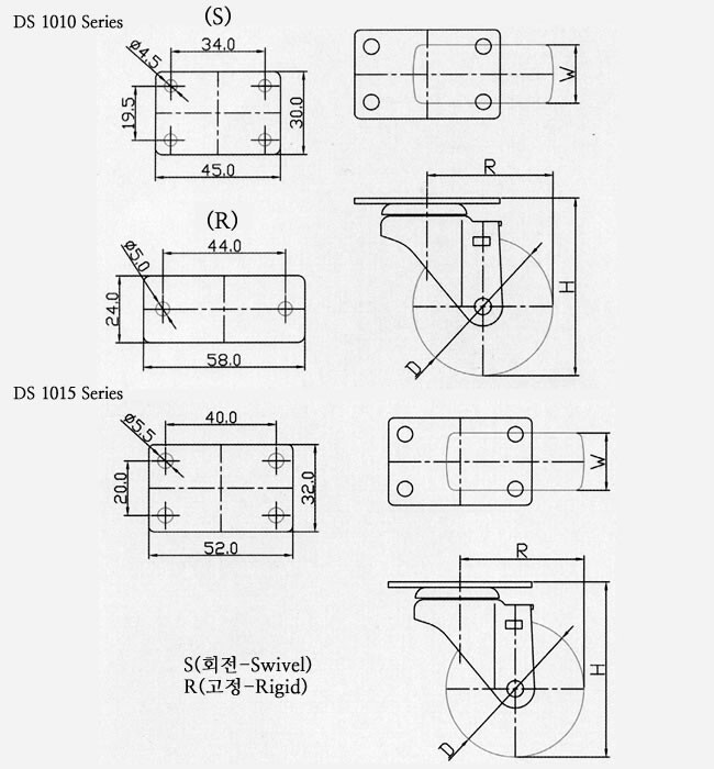 | 2"우레탄 싱글(적색/흑색/회색) | DS 1020 PUP | 50 | 23 | Poly Urethane | Plain | 68 | 45 | 35 |