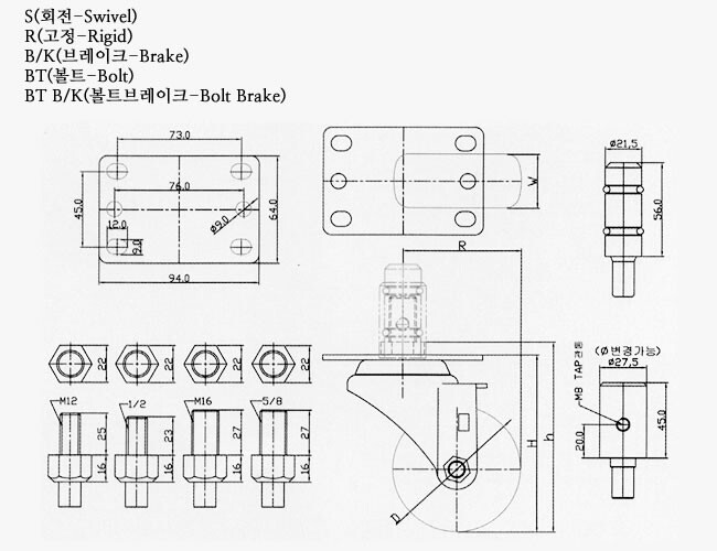 바퀴 높이 (볼트형) |
