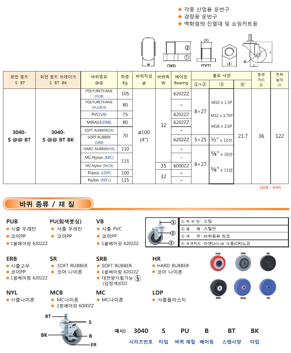 PBC 3040 볼트(4") (70Kg~115Kg)