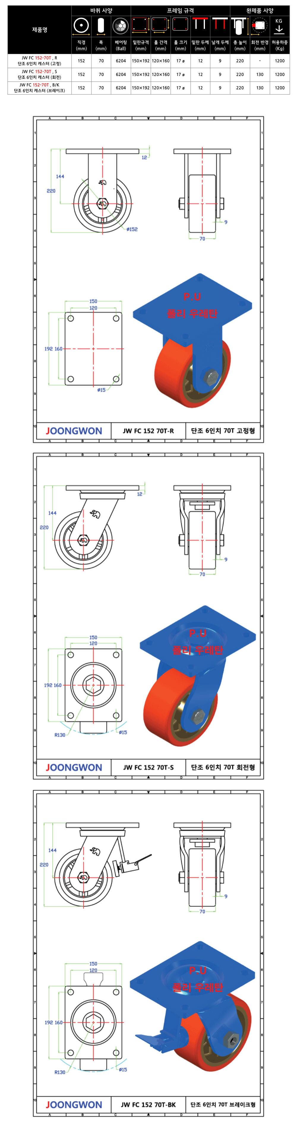 JW FC 152-70T (6") (1200Kg)