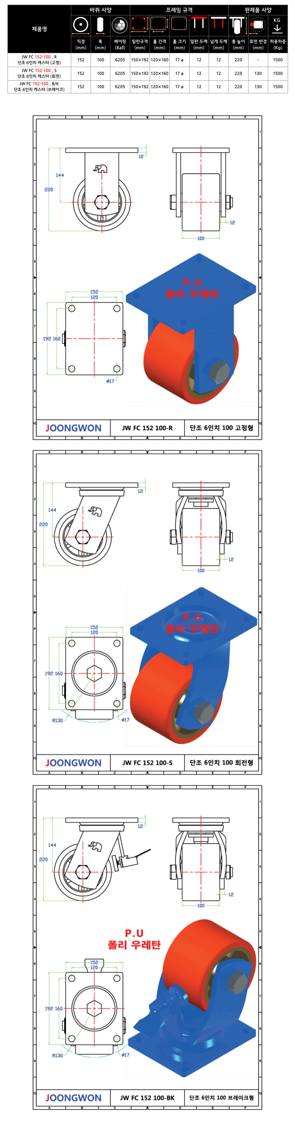 JW FC 152-100 (6") (1500Kg)