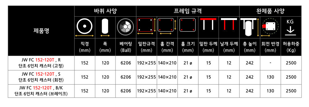 바퀴 사양 주물우레탄(적색) / MC 나일론