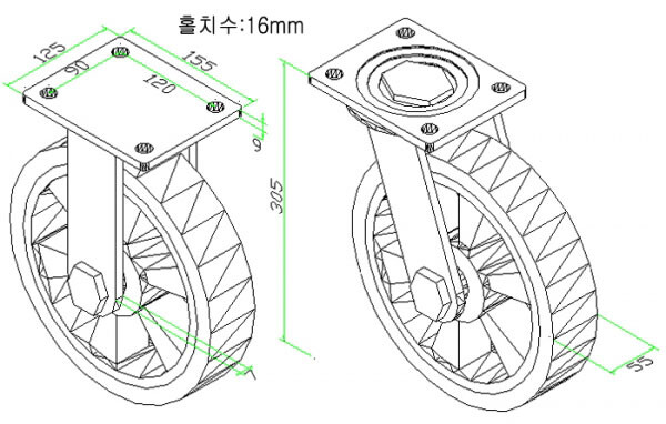 단조공법 브라켓 고하중 용도에 특화된 내구성이 우수한 캐스터