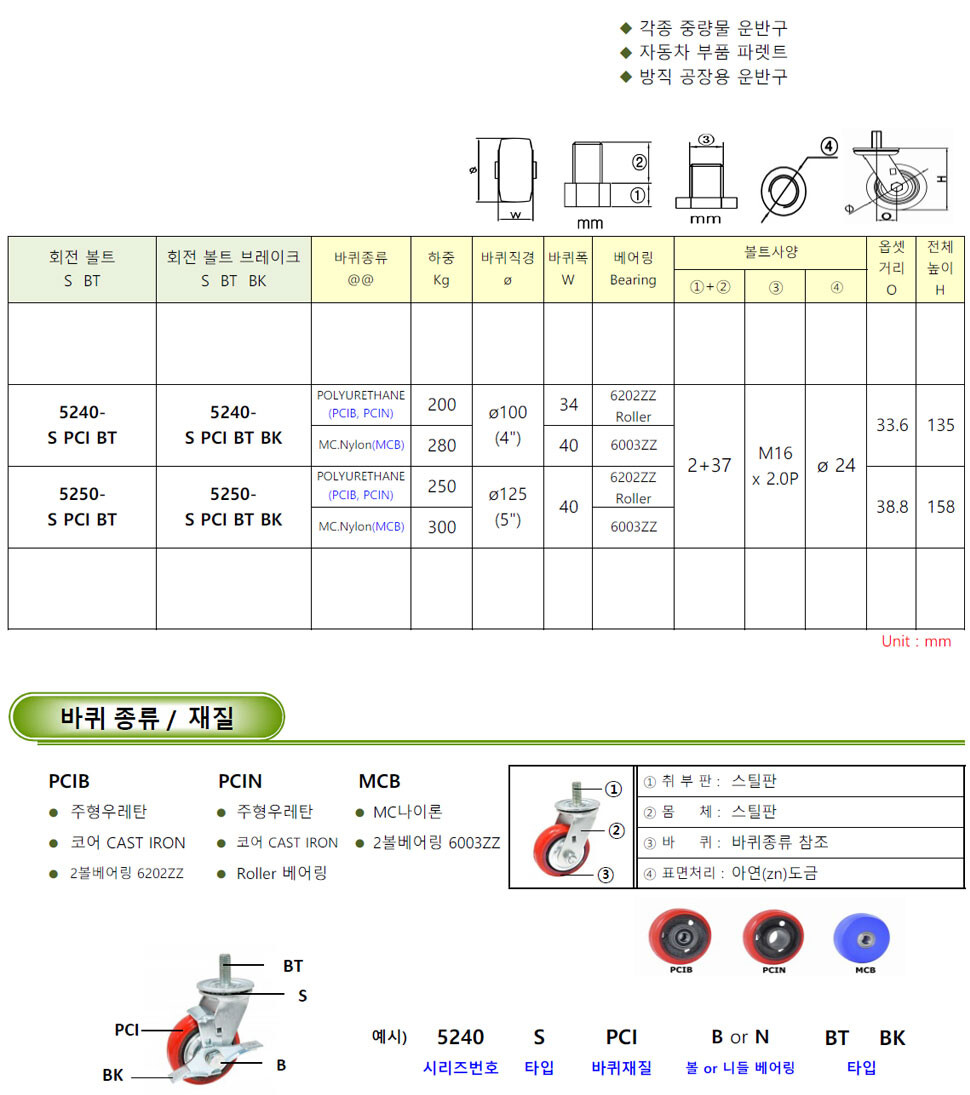 PBC 5200 볼트 (4",5")(200Kg~300Kg)