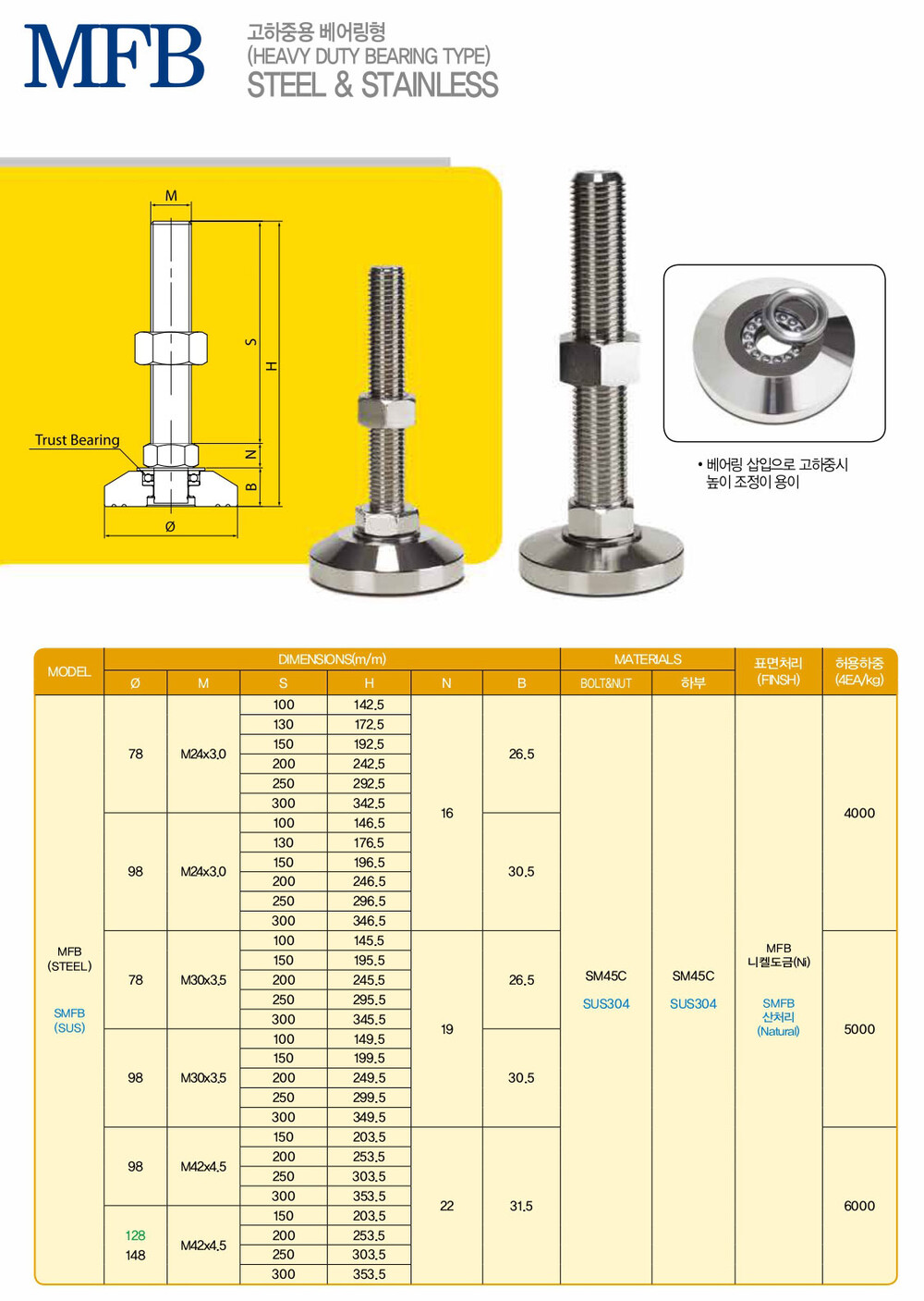 특징 : 일반 표준형, 방진용, 베어링 삽입으로 높이 조정시 용이.
